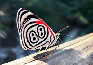 En América Latina habita una especie singular llamada Diaethria anna, reconocida por los números que parecen dibujarse en sus alas: el número 88. Sus patrones negros y blancos con bordes rojos parecen una firma, una marca que la naturaleza dejó para recordarnos su arte innato.